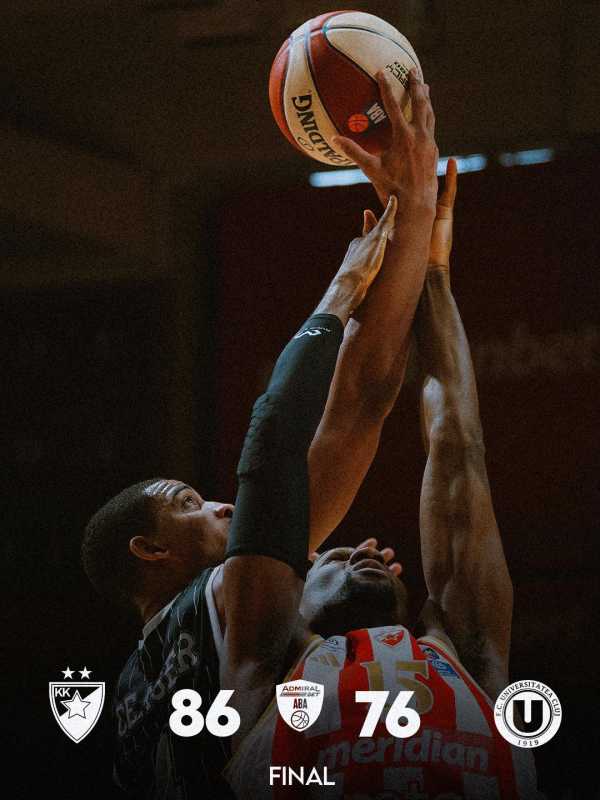 U-BT Cluj-Napoca a fost învinsă de echipa sârbă Steaua Roșie MeridianBet, cu scorul de 86-76 (25-19, 26-20, 15-23, 20-14), luni seara, la Belgrad, în faza Top 8 a competiției de baschet masculin ABA League. Crvena zvezda a dominat jocul în cea mai mare parte a sa, dar ''U''