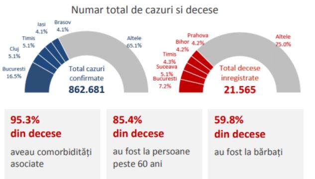 Caracteristicile deceselor: 95,3% dintre persoanele decedate aveau comorbidităţi asociate