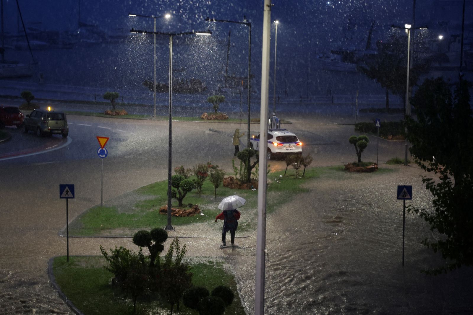 Autorităţile au declarat interdicţie de circulaţie pe timpul nopţii în Volos, un oraş cu o populaţie de aproape 140.000 de locuitori, în timp ce furtună Elias a atins zona, transformând străzile în râuri.