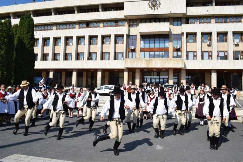Atelajele și animalele au fost lăsate într-o zonă a municipiului indicată de organizatori, apoi grupurile de dansatori de toate vârstele s-au reunit pe platoul din centrul Palatului Administrativ.