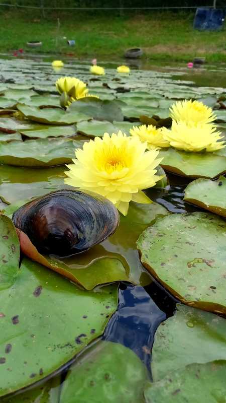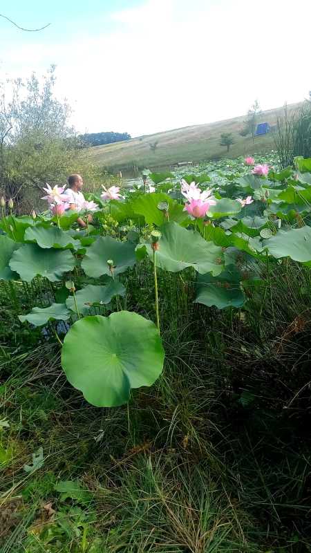 Anul trecut au plantat două specii de nufăr - Nymphaea alba și Nymphaea burgundi și una de lotus clasic, exact ca și cel de la Băile Felix, 'unde merge lumea să își facă fotografii pe podețul de deasupra lacului', spune Ramona. Le merge bine, dovadă florile frumoase și frunzele aspectuoase de acum.