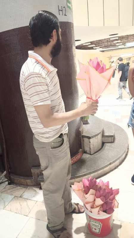 A treia oară parcă mă aștepta să urc în metroul lui. De data asta, florile de lotus erau deja cosmetizate, așezate în găleata de ketchup Heinz ca într-un tablou realist.