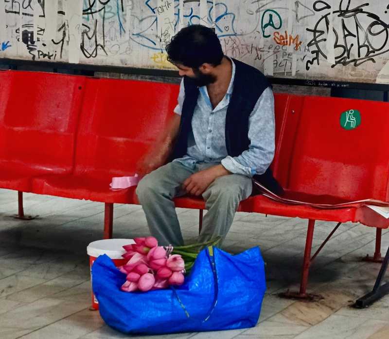 Acum vreo săptămână, într-o dimineață, mi-a atras atenția în stația Tineretului, pentru că rupea primele petale verzui ale florilor de lotus roz, mutilându-le înainte de a le înveli în staniol. 'Ai flori frumoase, dar cred că ai avea mai mulți clienți dacă nu ai rupe petalele astea verzi. Ar rămâne naturale', îi zic apropiindu-mă de el, fascinat de frumusețea naturii din punga de rafie albastră.