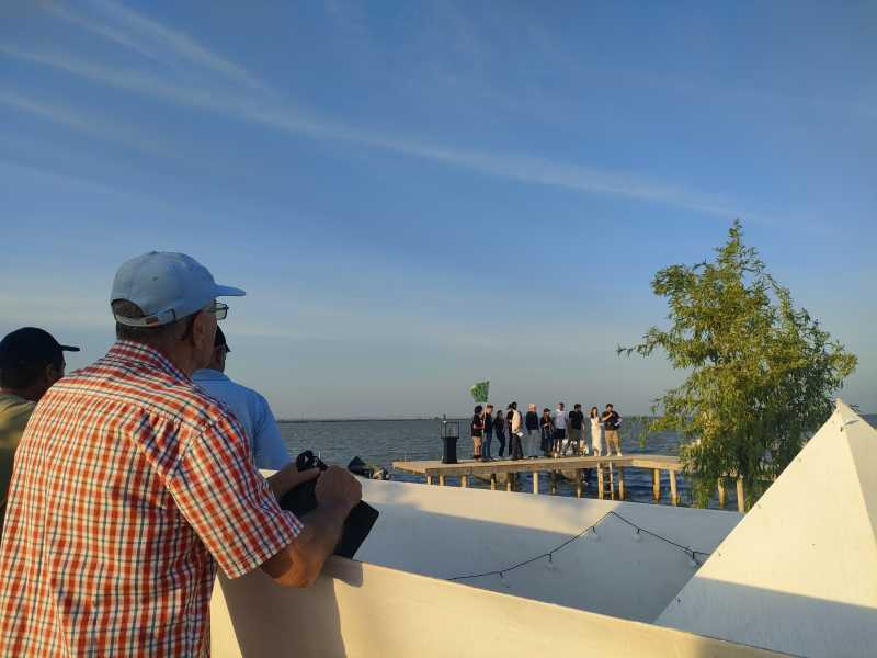 Îi fac fotografii pe malul lacului Razelm și spune că niciodată nu a văzut un nivel atât de scăzut al apei. Dă un autograf unui localnic, care-l oprește la intrarea pe drumul cherhanalelor din mini-port.