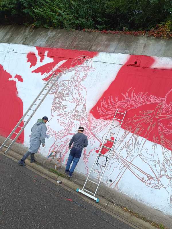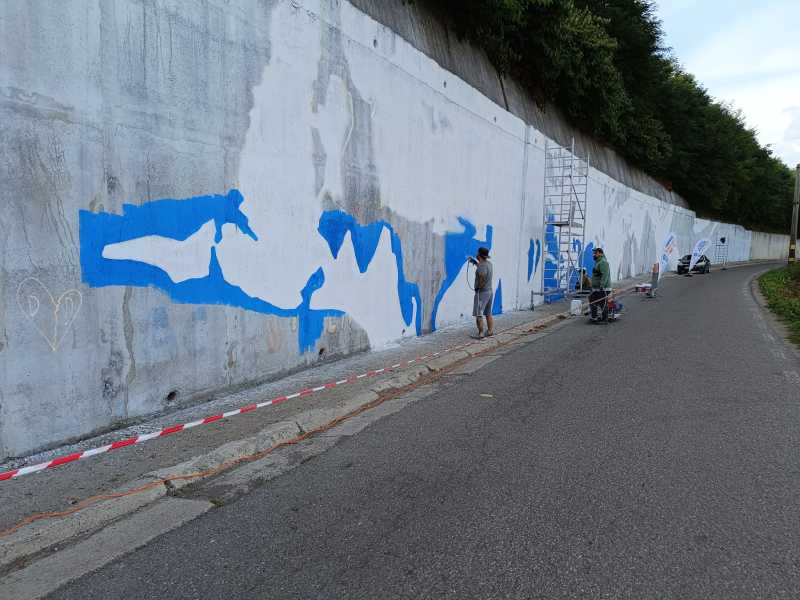 De câteva zile o echipă cunoscută de artiști stradali lucrează pentru a da viață și culoare unui zid sumbru, aflat în vecinătatea cascadei din oraș, important obiectiv turistic.