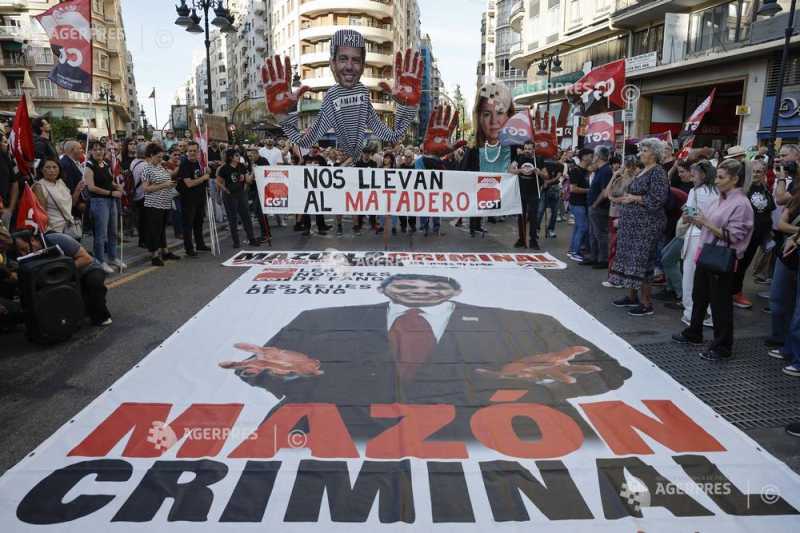 Această demonstrație are loc la aproape un an după ce inundațiile provocate de ploile torențiale au ucis 229 de persoane în regiunea Valencia, cea mai gravă catastrofă de acest gen din Spania din ultimele decenii.