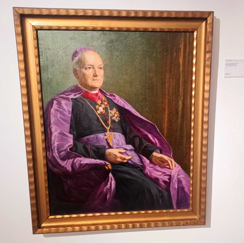 Pornind printre simeze, trebuie 'să răspunzi' salutului episcopului Nemeth Jozsef, importantă personalitate a Banatului din acele vremi, care are mâinile pregătite pentru binecuvântare, iar vizavi, să-i dai binețe unei 'Femei bătrâne', al cărei chip dezvăluie privirea directă și ageră a femeii simple, care a văzut multe în viață fără să vorbească prea mult. Este, doar, în fața episcopului, nu-i așa?