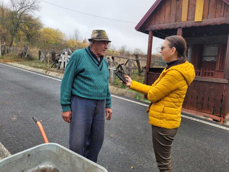 'A, credeam că au venit cu mașina cu pâine', ne întâmpină și tanti Mimi, o femeia trecută de 80 de ani pe care o întâlnim pe măsură ce înaintăm către mijlocul satului. Are oameni la lucru, că vrea să își mai facă ceva reparații prin gospodărie, dar lasă tot și iese repede la poartă de cum aude că în drum vorbesc oameni.
