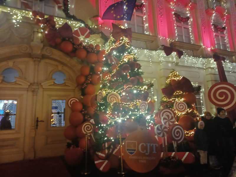 Astfel, Piața Unirii strălucește în serile de decembrie nu doar prin lumina în care a fost îmbrăcat, fabulos, Palatul Baroc (Muzeul Național de Artă), ci și prin eleganța ornamentală a spațiului cu reverberații istorice vechi pentru destinele Cetății. Terasele de aici, pustii în alte ierni, sunt acum pline ochi.