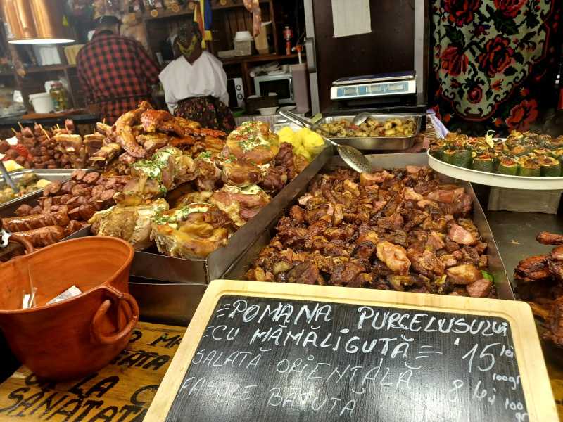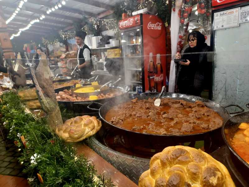 Este un melanj cu specific european, chiar dacă în Piața Libertății este instalată în acest an componenta gastronomică a târgului, unde poți simți cum miresmele Occidentului se întretaie cu cele ale Orientului: dulciuri elegant ambalate, vin fiert cu felii de lămâie și portocală, felii de cozonaci înalți de 15 centimetri, în care nu vezi foița de aluat, decât umplutura densă de mac sau nucă, halviță, porumb fiert, meniuri calde, tocănițe și grătare, fripturi și ciolănele, jumări, dovlecei umpluți cu carne, mămăliguță cu telemea în straturi, aperitive de sezon, salate de pește, vinete, boeuf sau ''pomană de purceluș'', tipic românesc.