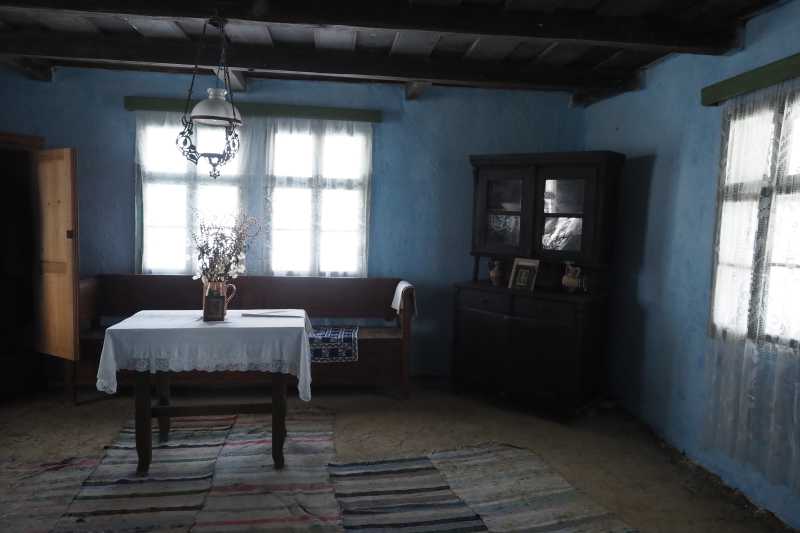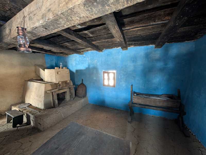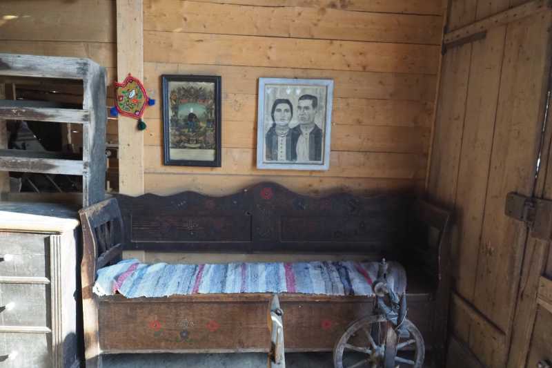 În interior, fiecare obiect își păstrează locul original, iar privirea este atrasă de anexele gospodărești, esențiale pentru viața de altădată. Găbănașul, amplasat strategic în dreptul ferestrei principale, reflectă importanța bunurilor depozitate acolo și grija pentru protejarea lor.