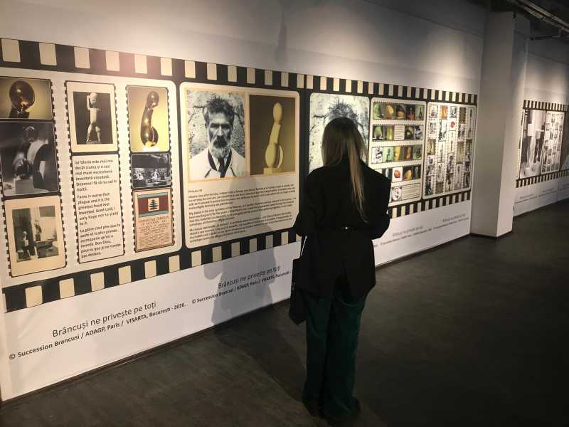 Câteva zeci de persoane au participat, miercuri seara, la vernisajul expoziției 'Brâncuși ne privește pe toți', dedicată vieții și operei lui Constantin Brâncuși, cu prilejul împlinirii a 150 de ani de la nașterea sculptorului.