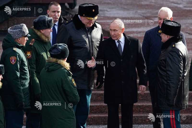 Președintele rus Vladimir Putin a împărțit luni decorații unui grup de militari ruși dintre care cei mai mulți au luptat pe frontul din Ucraina, în cadrul unei ceremonii organizate la Kremlin cu ocazia Zilei apărătorului patriei (fosta zi a armatei sovietice din perioada sovietică), cu o zi înaintea împlinirii a patru ani de când liderul rus a dat ordin armatei sale să invadeze Ucraina vecină, relatează EFE. În discursul rostit cu această ocazie, Putin s-a referit strict la 'operațiunea militară specială' - așa cum numește oficial Kremlinul războiul pe care l-a declanșat în Ucraina - fără să rostească numele țării vecine invadate.