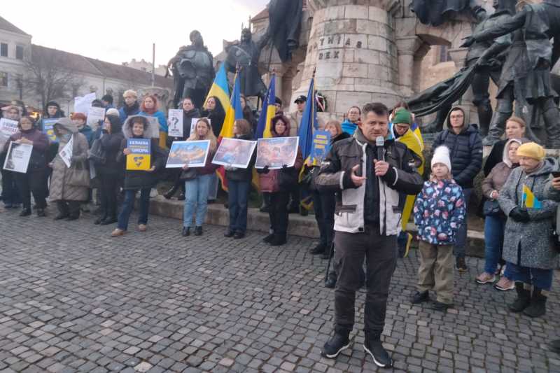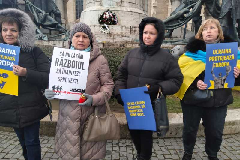 Zeci de persoane au comemorat, marți, la Cluj-Napoca, patru ani de la invazia rusă în Ucraina, într-o manifestație în Piața Unirii, organizată de filiala Cluj a Asociației Tinerilor Ucraineni din România.