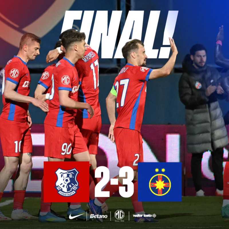 FCSB a învins-o pe Farul Constanța cu scorul de 3-2 (0-1), luni seara, în deplasare, la Ovidiu, într-un meci din etapa a cincea a fazei play-out a Superligii de fotbal. Farul a deschis scorul prin Eduard Radaslavescu (43), după ce portarul Ștefan Târnovanu a respins mingea în jucător la centrarea lui David Maftei.