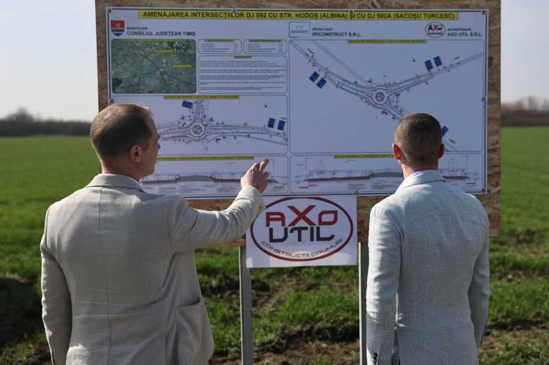 Consiliul Județean Timiș a deschis, miercuri, două noi șantiere pentru construcția a două noi sensuri giratorii pe drumul județean DJ 592 A, Timișoara - Buziaș - Sacoșu Turcesc, ca parte a unui plan de refacere a mai multor intersecții din zonă, cunoscute pentru frecventele accidente rutiere înregistrate. 'Intersecția nu era iluminat