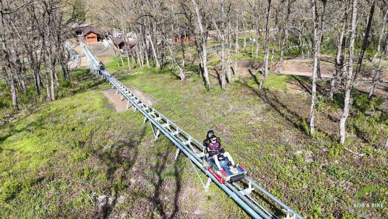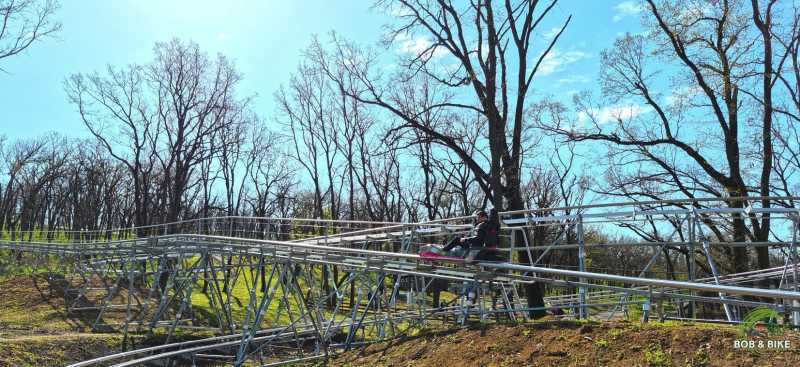 Pistele de bob au o capacitate de aproape 300 de persoane pe oră și oferă experiențe diferite: una de tip speed-bob, cu sănii individuale pe role magnetice, care pot atinge viteze de până la 40 km/h, și o a doua de tip Alpine Coaster, unde viteza este controlată de utilizator.