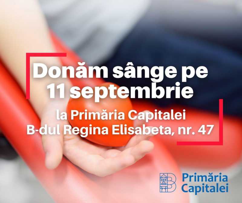 Un nou eveniment de donare de sânge va avea loc, joi, la Primăria Capitalei, organizat de administratorul public al Capitalei, Lucian Judele, împreună cu Centrul de Transfuzie Sanguină București. Donatorii sunt așteptați între orele 8:30 - 12:30, informează