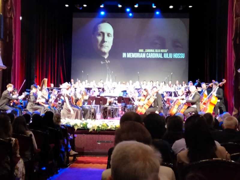 Spectacolul-concert 'IN MEMORIAM CARDINAL IULIU HOSSU' a avut loc în sala mare a Operei Naționale din Cluj, la eveniment participând câteva sute de persoane.