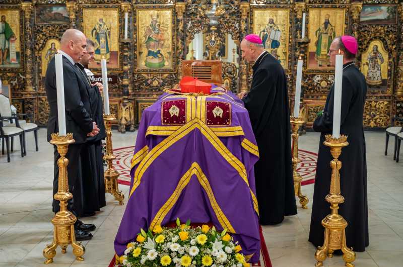 Sâmbătă s-a recules la catafalcul cu sicriul în care a fost depus Cardinalul Lucian Mureșan și șeful Executivului, Ilie Bolojan.