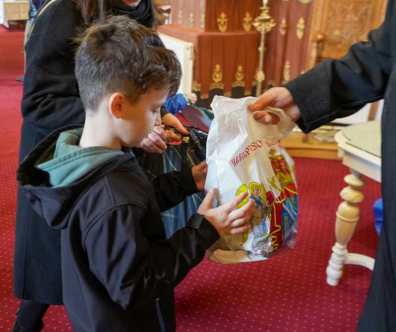 Copiii aflați în evidențele parohiilor din municipiul Galați au primit în cadrul acțiunii de marți daruri constând în îmbrăcăminte, încălțăminte și alte produse, acestea fiind distribuite la biserica 'Vovidenia', unde au fost organizate pe categorii de vârstă și oferite beneficiarilor.