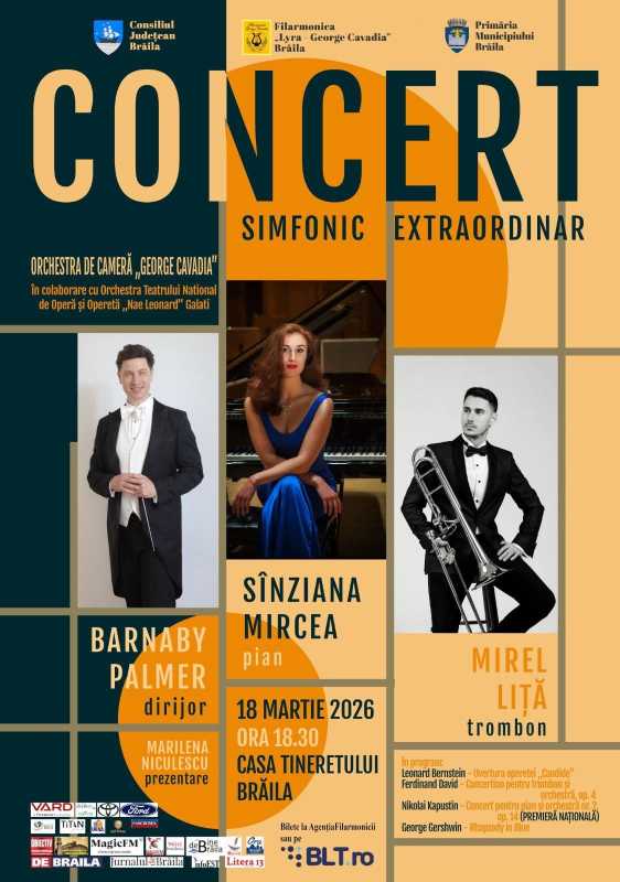 Dirijorul american Barnaby Palmer va conduce Orchestra de Cameră 'George Cavadia' Brăila într-un concert simfonic extraordinar programat pe 18 martie la Casa Tineretului, eveniment care include și premiera națională a unei lucrări de Nikolai Kapustin. Potrivit unui comunicat transmis de Filarmonica 'Lyra-George Cavadia' Brăila, concertul