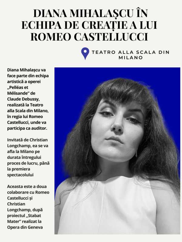 Un student român participă în echipa de creație a operei ''Pelleas et Melisande'' de Claude Debussy, care va avea loc la Teatro alla Scala din Milano, o producție a regizorului Romeo Castellucci, o oportunitate de mentorat care i-ar putea deschide auditorului calea către viitoare colaborări cu teatre consacrate din Europa.