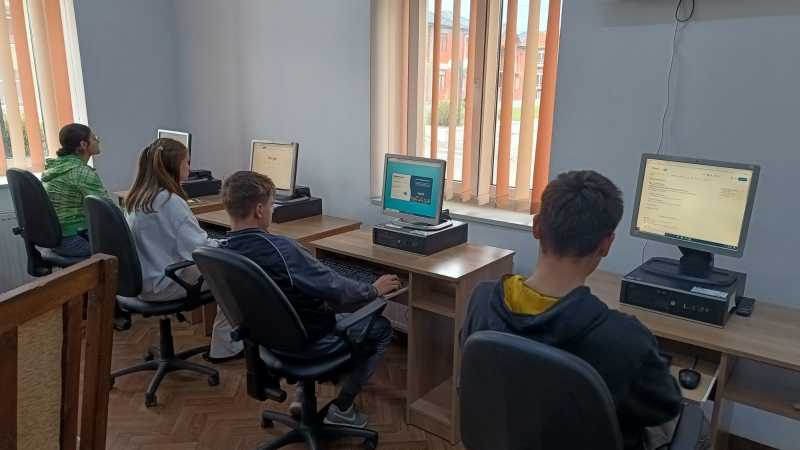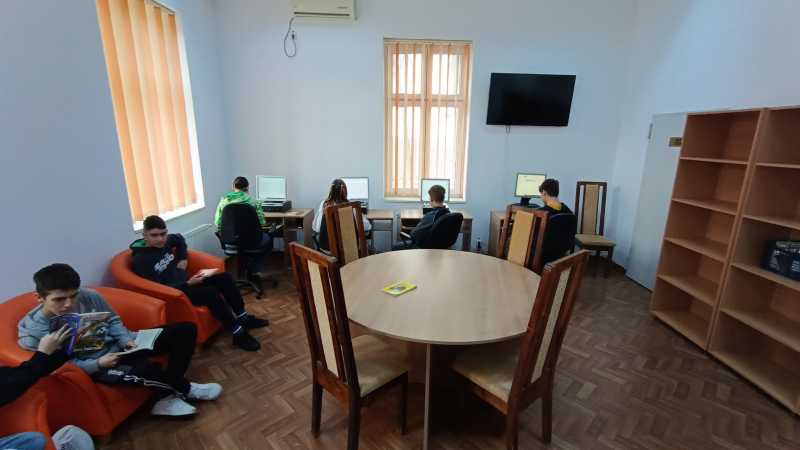 La momentul documentării noastre, toate computerele din bibliotecă erau ocupate de elevi care terminaseră cursurile de la școală.