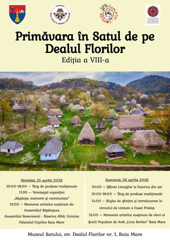 Ediția din acest an a evenimentului 'Primăvara în Satul de pe Dealul Florilor, organizat în weekend-ul 25-26 aprilie de Muzeul Satului din municipiul Baia Mare, va avea invitați din Ucraina, a declarat joi, pentru AGERPRES, managerul instituției de cultură, Monica Mare. 'Evenimentul nostru a ajuns la a opta ediție și are ca
