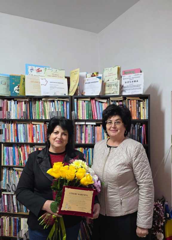 Maricica Coșeru, bibliotecar, şi Monica Amanci, primarul comunei Albești