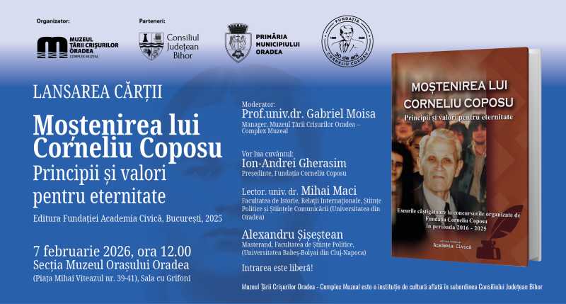 Eseurile scrise de laureații celor zece ediții ale Concursului 'Corneliu Coposu' sunt publicate într-o carte dedicată memoriei lui Corneliu Coposu și care va fi lansată sâmbătă, 7 februarie, la Muzeul Orașului Oradea. 'Valoarea acestei cărți constă în faptul că este scrisă de oameni tineri, oferind o perspectivă p