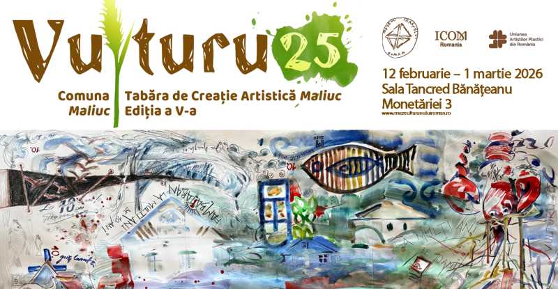 Expoziția colectivă de artă plastică 'Vulturu 25' se va deschide pe 12 februarie la Sala Tancred Bănățeanu a Muzeului Național al Țăranului Român. Expoziția reunește lucrările realizate în cadrul celei de-a V-a ediții a Taberei de creație artistică Maliuc desfășurată anul trecut. Sunt prezentate lucrări de Elida Veronica Bu