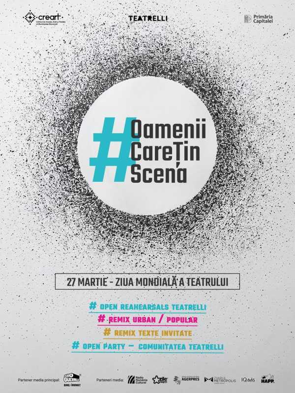 CREART, prin proiectul Teatrelli, propune, cu ocazia Zilei Mondiale a Teatrului, pe 27 martie, o serie de evenimente sub egida #OameniiCareTinScena, organizate în intervalul orar 11:00 - 23:00, informează organizatorii. Inițiativa își propune să aducă în prim-plan procesul complex și fascinant din spatele spectacolului de teatru: repetiții, e