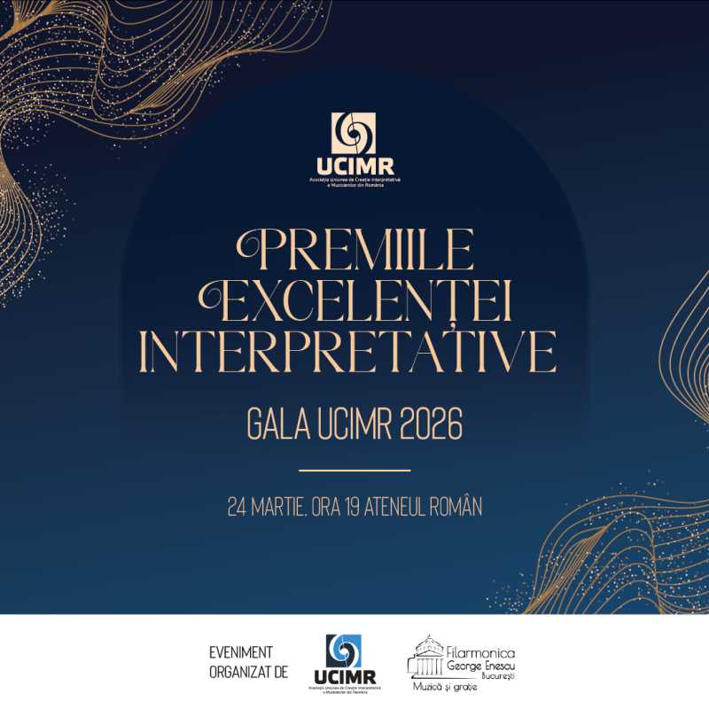 Premiile excelenței interpretative - Gala UCIMR 2026 are loc, marți, la Sala Mare a Ateneului Român. În cadrul galei, care se află la ediția a II-a, a fost inclusă și categoria 'Generația Mileniului III', dedicată tinerilor interpreți, indiferent de genul muzical, cu secțiunile Interpretare vocală și Interpretare instrument