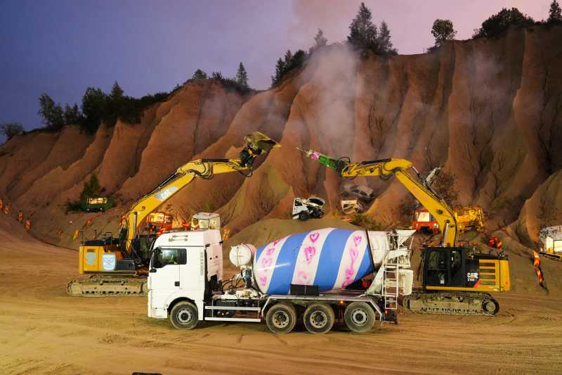 O carieră de calcar dezafectată din mediul rural estonian este decorul în care mai mult de o duzină de vehicule, inclusiv autobuze urbane, mașini de pompieri, un camion și o betonieră cu inimi pictate pe ea, circulă în fața unor tribune improvizate pentru spectatori. Două excavatoare își flutură amenințător brațele mecanice unul către celălalt într-o reconstituire a luptei fatale cu sabia dintre personajele Tybalt și Mercutio, iar o mașină a fost aruncată de pe o stâncă.