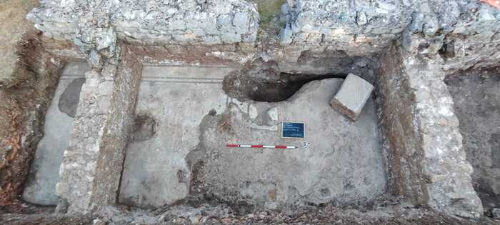 Un mormânt conținând rămășițele unui nou-născut, precum și fragmente ale unei podele mozaic și părți ale fundației unei clădiri au fost descoperite în prima campanie de săpături arheologice promovată de Muzeul Național Abruzzo (MuNDA) în L'Aquila, în cadrul Parcului Arheologic Amiternum, conform unui anunț făcut marți de arheologi it