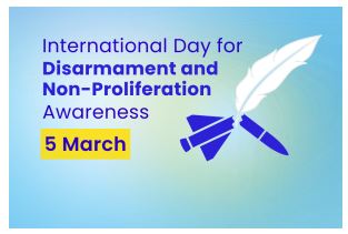 Ziua internațională pentru dezarmare și neproliferare a fost stabilită la 7 decembrie 2022, când Adunarea Generală a ONU a adoptat o rezoluție privind proclamarea zilei de 5 martie drept zi internațională pentru dezarmare și neproliferare. Prin marcarea zilei se dorește o mai bună conștientizare și înțelegere în rândul publicului, în special al