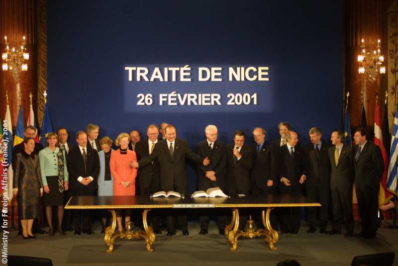 La 26 februarie 2001, a avut loc ceremonia de semnare a Tratatului de la Nisa, care a modificat Tratatul privind Uniunea Europeană, Tratatele de instituire a Comunităților Europene și alte acte conexe, pregătind blocul comunitar de cea mai amplă etapă de extindere a sa, potrivit https://eur-lex.europa.eu.