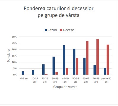 Ponderea deceselor pe categorii de vârstă: categoriile 70-79 şi 60-69 de ani, cele mai afectate