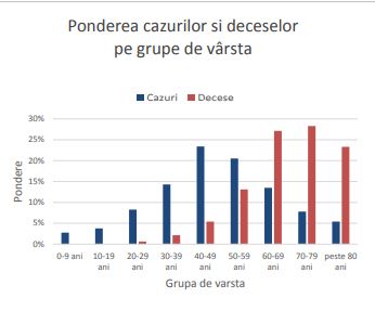 Ponderea deceselor pe categorii de vârstă: categoriile 70-79 şi 60-69 de ani, cele mai afectate