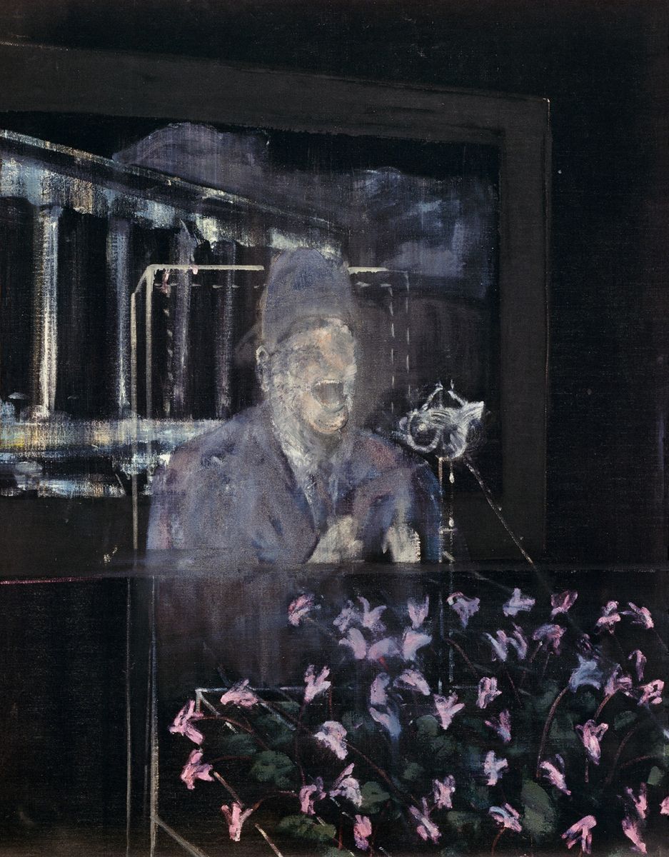 Începând din 1944, Francis Bacon s-a dedicat picturii şi a început să creeze lucrările pentru care este cunoscut, cu "Three Studies for Figures at the Base of a Crucifixion" (1962) văzut ca un punct de cotitură major. Pânzele sale mari înfăţişează figuri umane - cel mai adesea o singură figură izolată într-o cameră goală, într-o cuşcă sau pe un fundal negru. Pentru o serie de picturi, Bacon a fost inspirat de portretul Papei Inocenţiu al X-lea (circa 1650), realizat de Diego Velázquez, dar a pictat subiectul în propriul stil, folosind culori închise şi distorsionând faţa personajului ("Study after Velázquez's Portrait of Pope Innocent X", 1953).