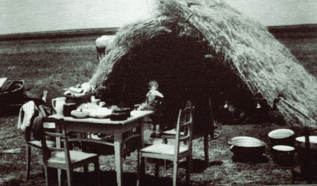 Lăsaţi în mijlocul câmpiei, deportaţii şi-au construit la început bordeie, locuinţe ale sărăciei