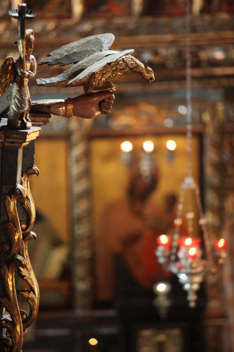 Catapeteasma este formată din icoane zugrăvite în Grecia, la Muntele Athos, dintre care, de o mare valoare artistică, sunt cele zece împărăteşti.