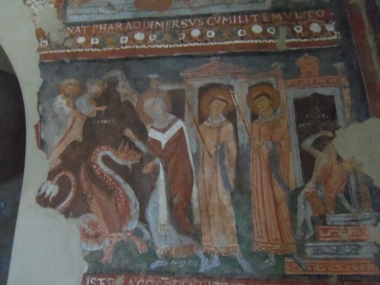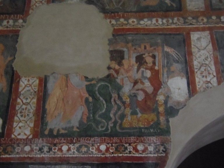 În biserică se mai păstrează fresce din secolul al XVI-lea, înfăţişând Botezul şi Răstignirea lui Hristos, precum şi martiriul Sfinţilor Petru şi Pavel.