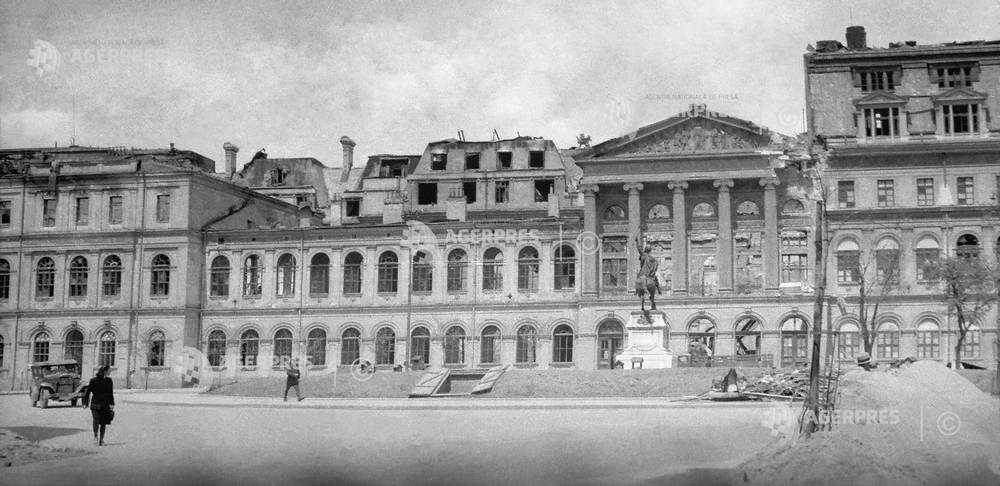 Clădirea Universităţii din Bucureşti, dupa bombardamentul german din 23 august 1944.