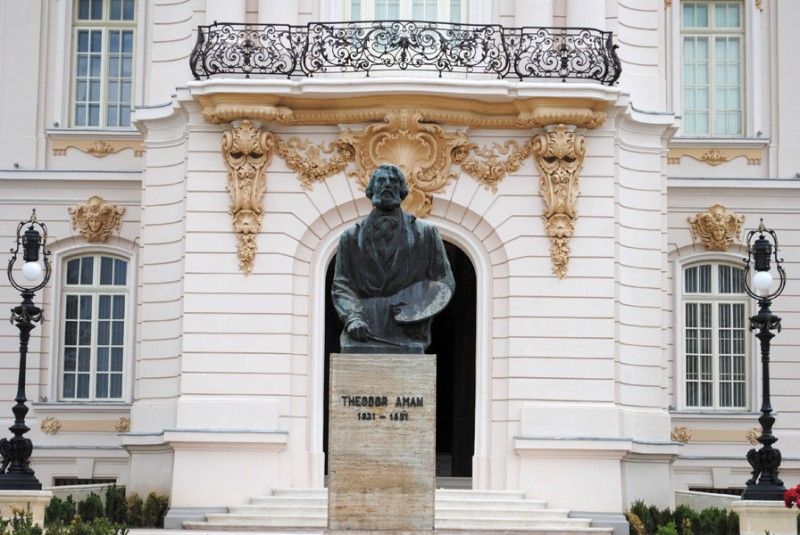 În curtea din faţa palatului este amplasat bustul pictorului Theodor Aman, operă a sculptorului Ion Jalea, arată monumenteoltenia.ro.