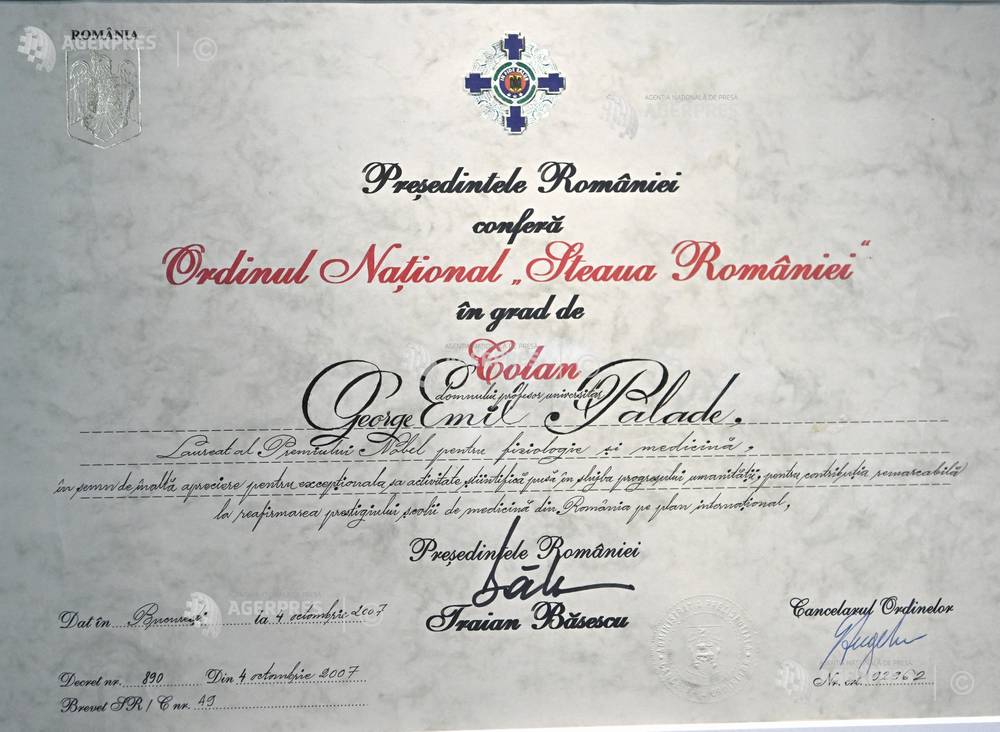 Festivitatea de acordare a titlului de 'Cetatean de onoare al Municipiului Bucuresti' biologului si omului de stiinta George Emil Palade.