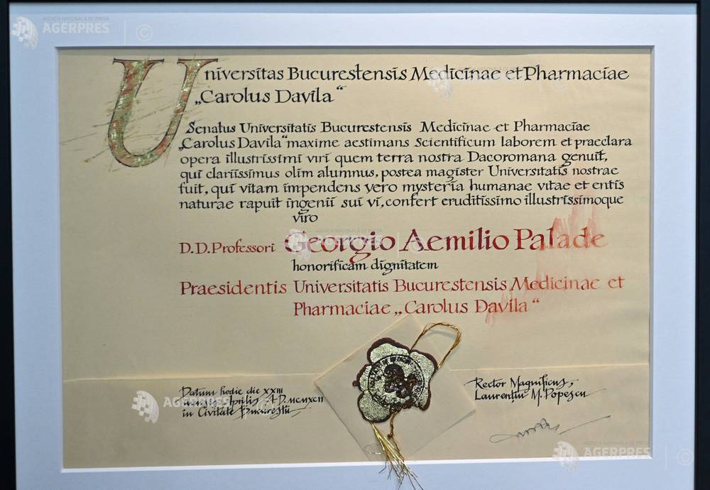 Ceremonia de înmânare a Diplomei Omagiale a Universităţii 'Carol Davila' din Bucureşti biologului şi omului de ştiinţă George Emil Palade.
