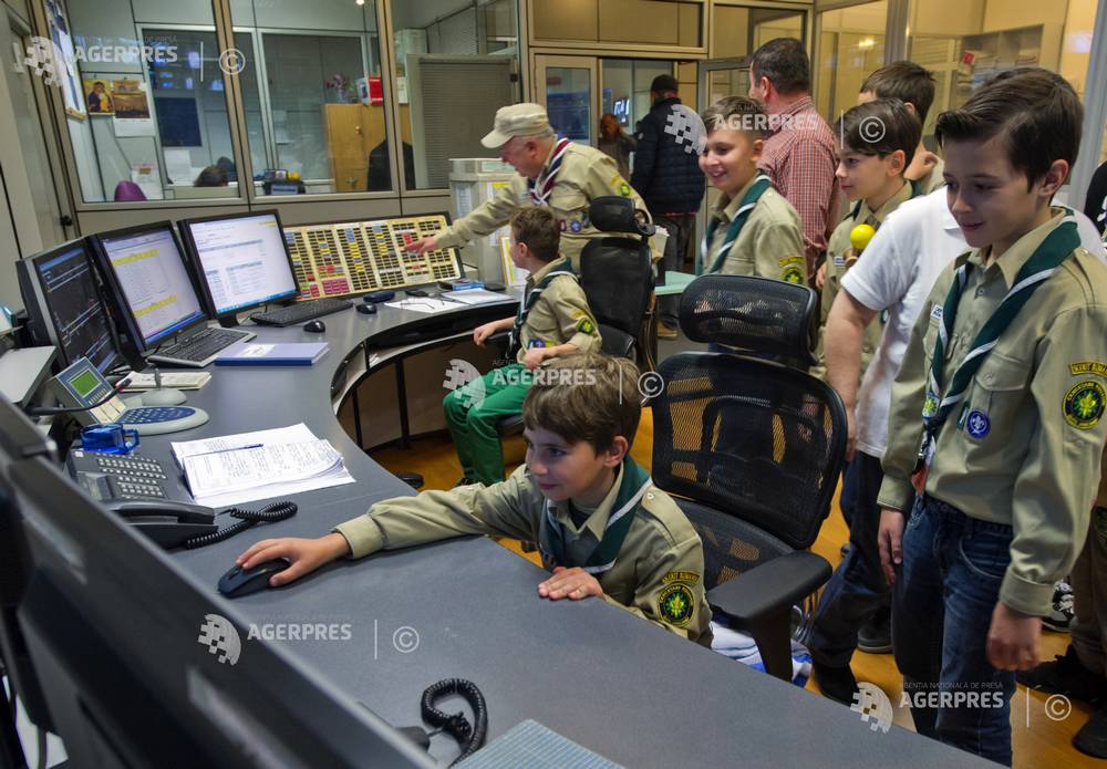 Un grup de cercetaşi participă la ''Ziua Porţilor Deschise'', la Dispeceratul Central Metrorex, situat în incinta staţiei de metrou Piaţa Unirii 1.