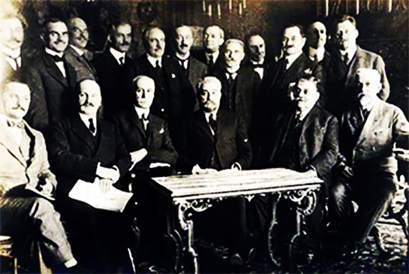 Delegația română la Conferința de la Paris, în centru Ionel I. C. Brătianu, ultimul din dreapta în picioare Ion Pelivan